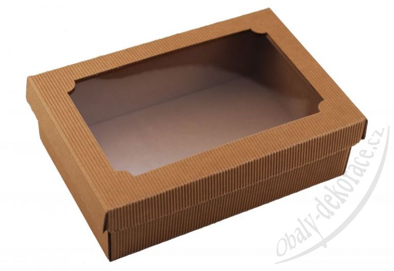 Papírová krabice extra pevná s průhledným víkem z hnědo - hnědé 2 vrstvé mikrovlny.