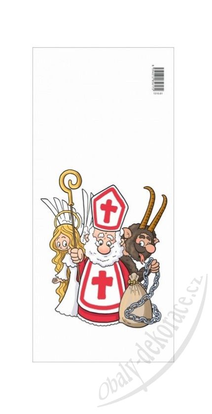 Sáček průhledný PP (polypropylen) 20 x 40cm, s potiskem Mikuláš, čert, anděl.